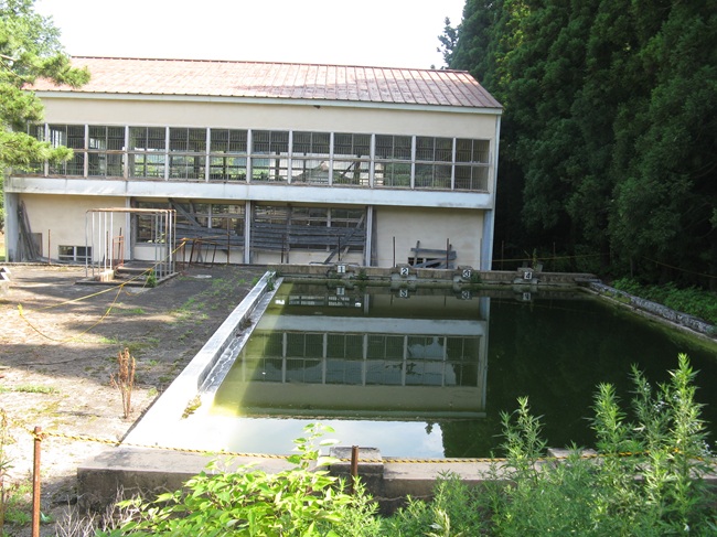 早月川の右岸に沿って歩くと、道沿いに廃校がある。